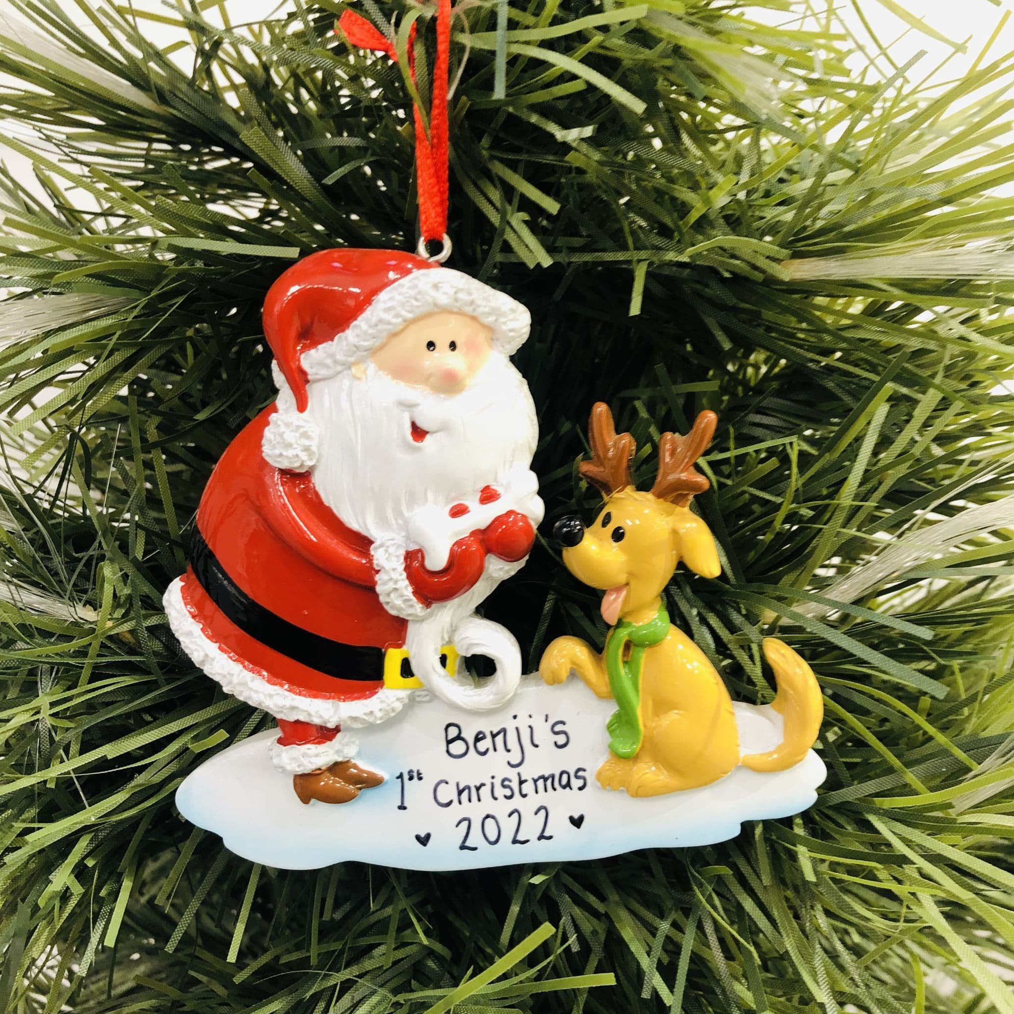 Dog with Santa Christmas Decoration
