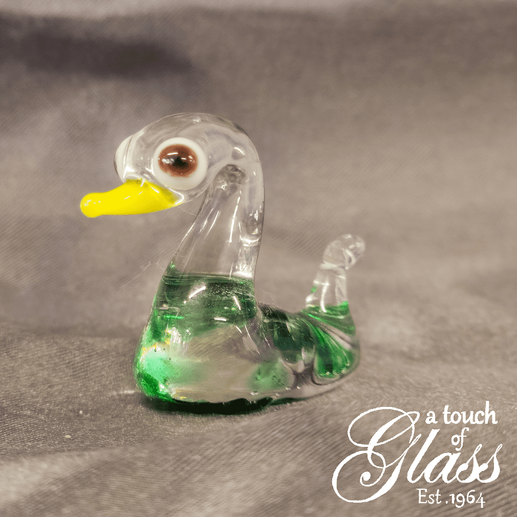 Made with green glass this lucky duck represents the Taurus zodiac sign.