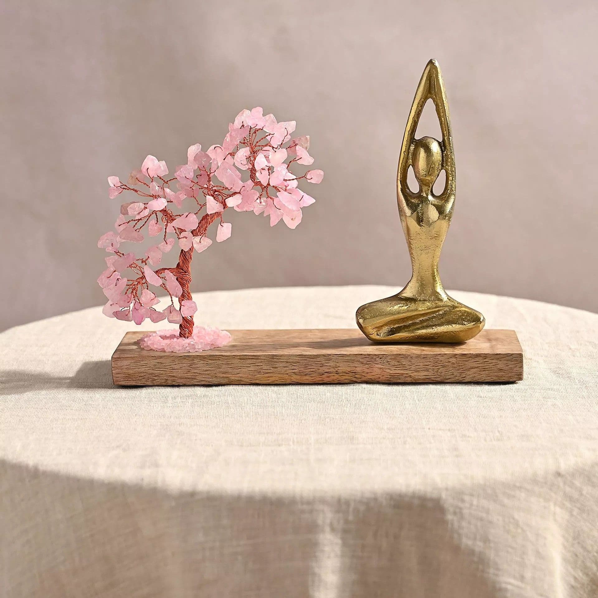 Rose Quartz Gemstone Tree Yoga Ornament - Serenity